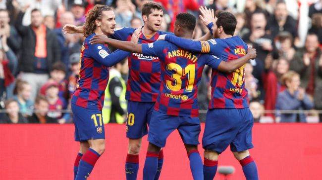 تقاسم فريق برشلونة صدارة الدوري الإسباني لكرة القدم، مع ريال مدريد، وذ...
