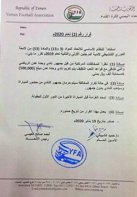 اصدر الاتحاد العام لكرة القدم قرارا بمعاقبة نادي وحدة عدن بتغريمه مبلغ...