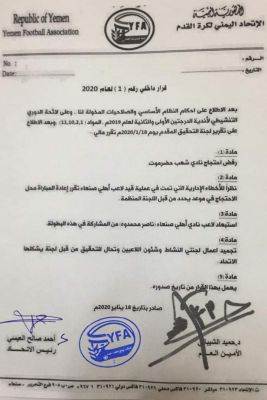 اصدر الاتحاد العام قرارات بشأن احتجاج فريق نادي شعب حضرموت على لاعب نا...