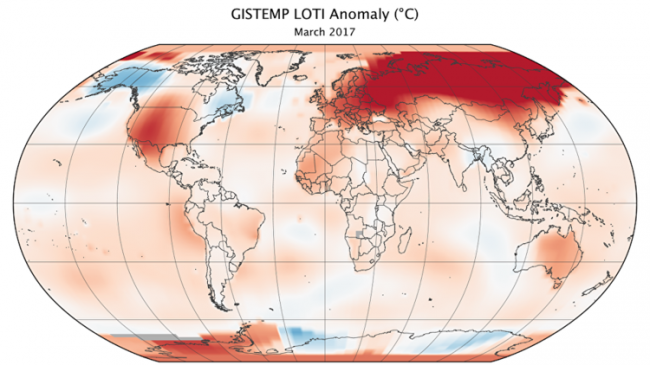 أعلن معهد الدراسات التابع لوكالة ناسا أن شهر مارس 2017 هو ثاني أعلى شه...